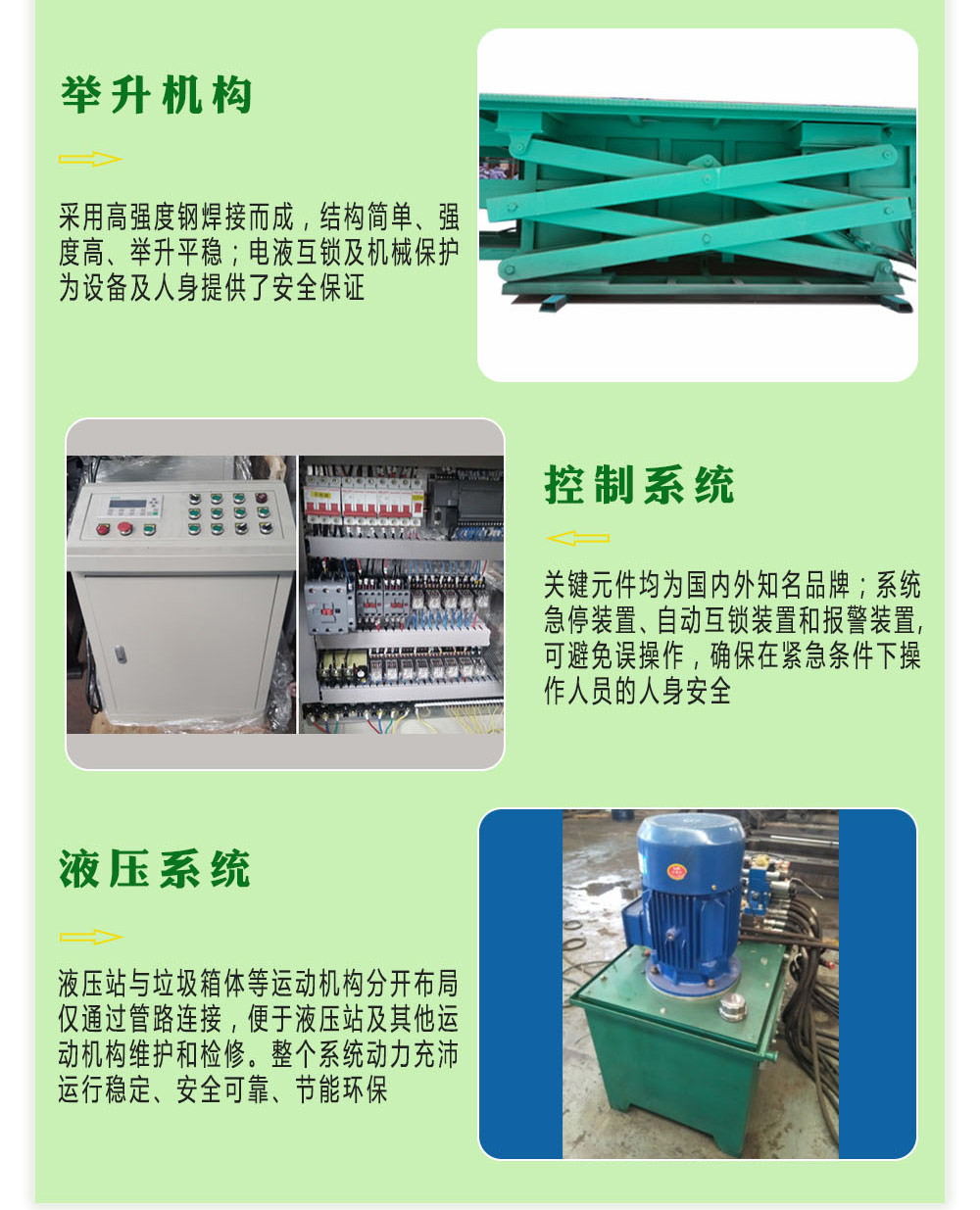 ★采用两侧四支点双剪叉臂液压升降,省时,省力、效率高,升降平稳,安全可靠。