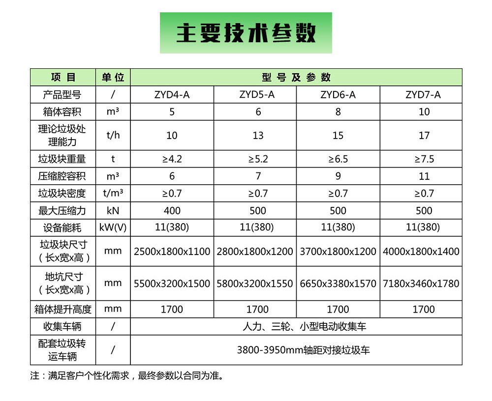 ★投资和运营费用低,适用于小区、街道、乡镇的垃圾中转站,可设置在室内或室外。