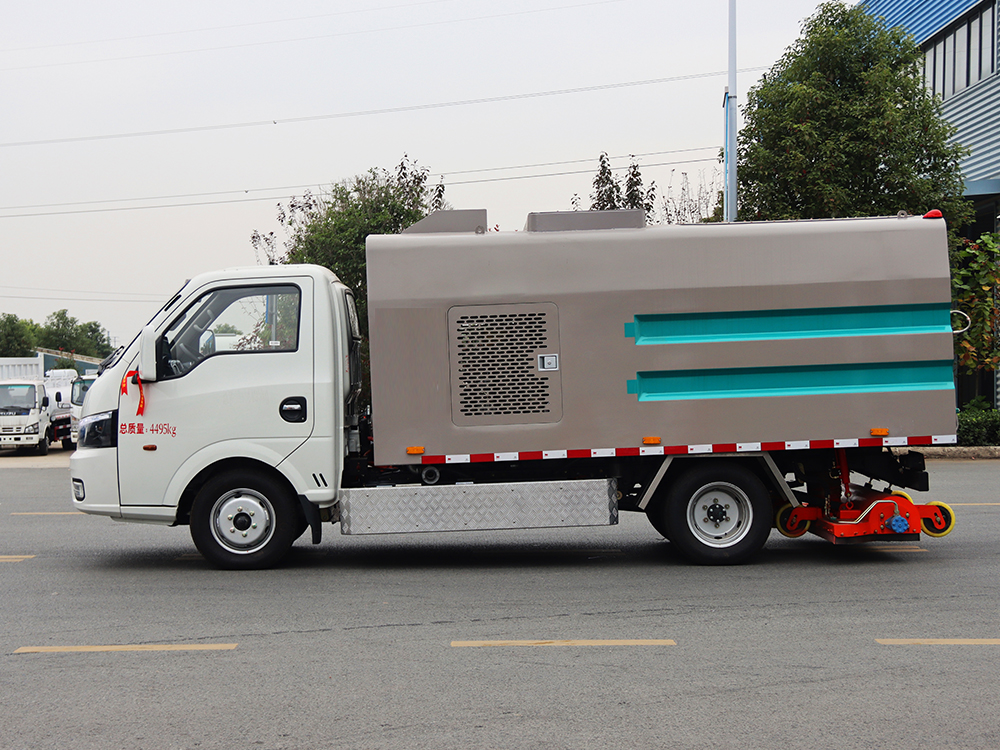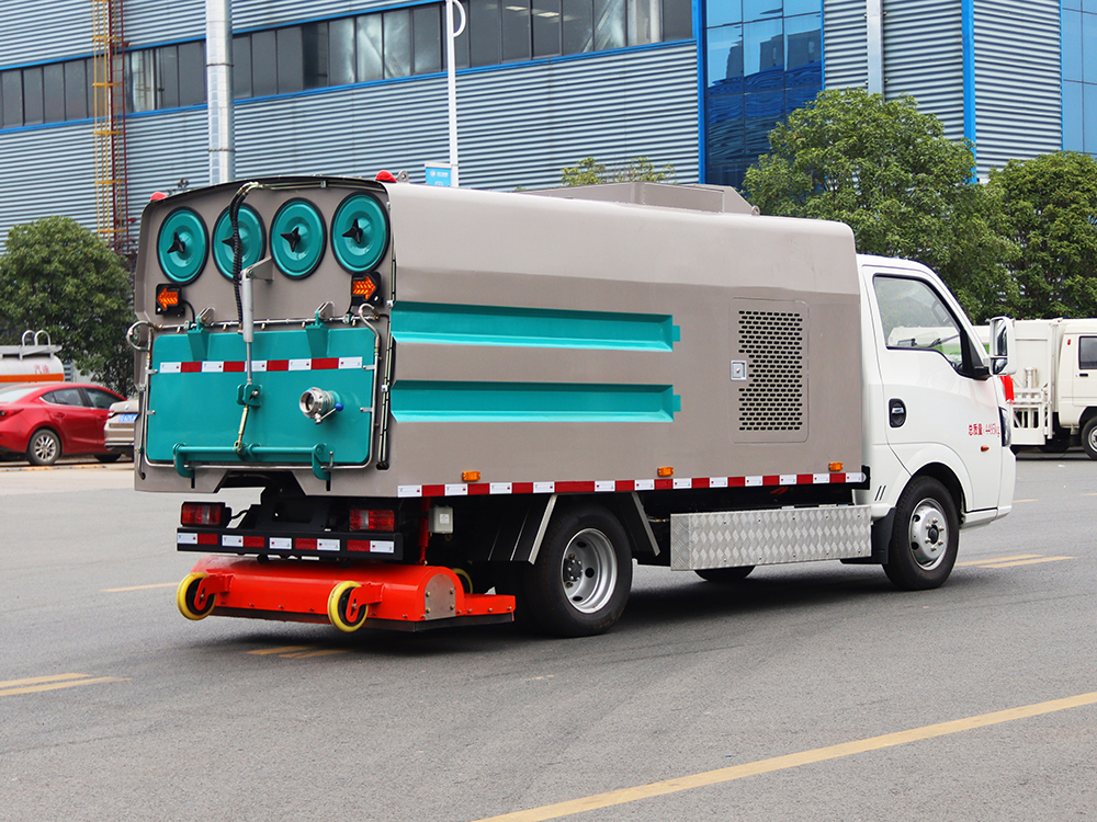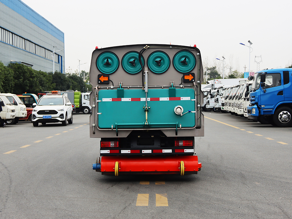 上装配置:底盘电池提供动力,永磁同步电机驱动,可根据需要实时调速,取力操作与底盘行驶系统无任何关联,用车体验感极佳。中置吸盘,免维护离心式风机,皖液齿轮泵,海普瑞斯液压油缸,海普瑞斯电磁阀组,不锈钢水箱、垃圾箱,施耐德控制开关、尾部LED箭头灯,水箱低水位报警装置,倒车及工作状态室内监控系统,最大清扫宽度2m-2.2m。尾部带电控操作系统, 液压驱动电气自动控制吸嘴升降,弹簧浮动悬挂。 电气系统由底盘车电路专用工作装置操作控制电路组成。