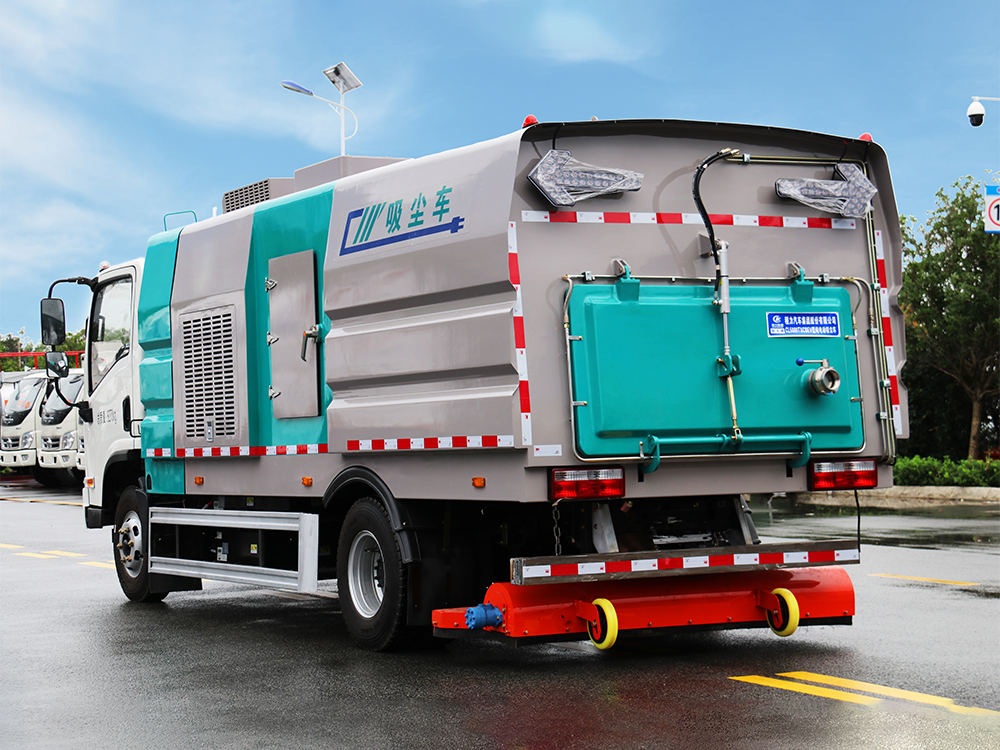 上装配置:底盘电池提供动力,永磁同步电机驱动,可根据需要实时调速,取力操作与底盘行驶系统无任何关联,用车体验感极佳。中置吸盘,免维护离心式风机,皖液齿轮泵,海普瑞斯液压油缸,海普瑞斯电磁阀组,不锈钢水箱、垃圾箱,施耐德控制开关、尾部LED箭头灯,水箱低水位报警装置,倒车及工作状态室内监控系统,最大清扫宽度2m-2.2m。尾部带电控操作系统, 液压驱动电气自动控制吸嘴升降,弹簧浮动悬挂。 电气系统由底盘车电路专用工作装置操作控制电路组成。