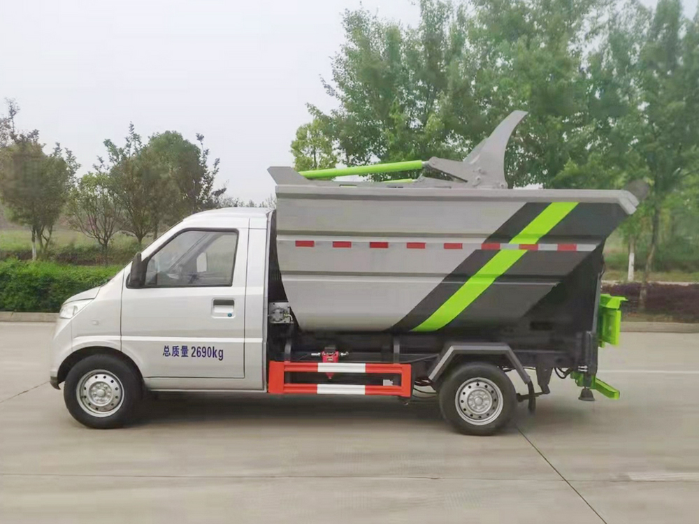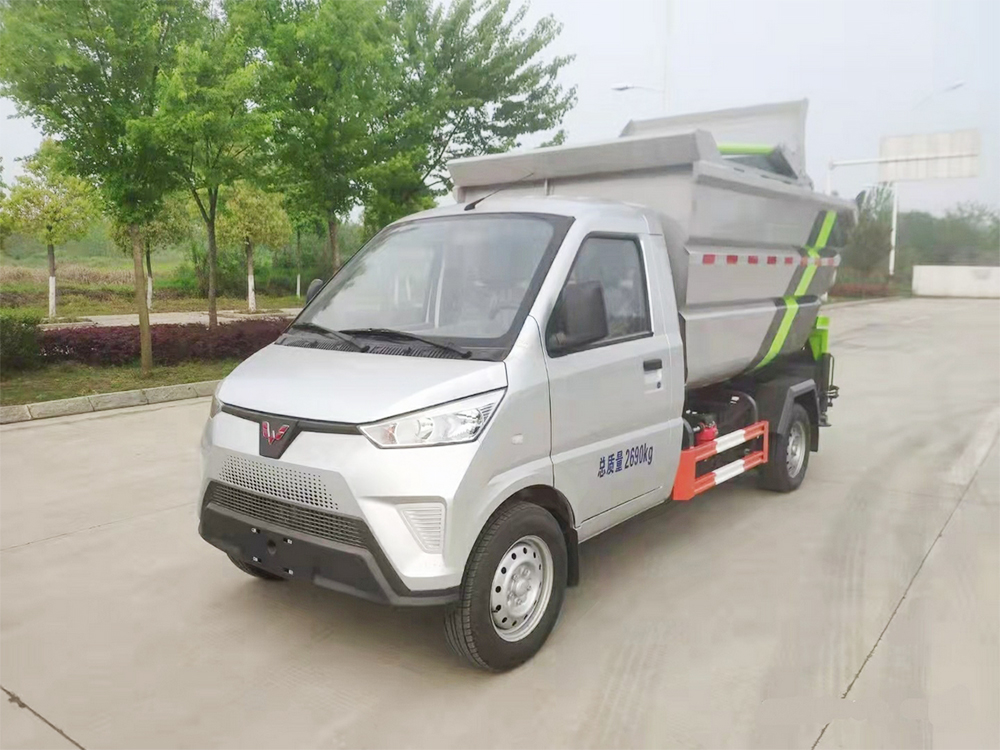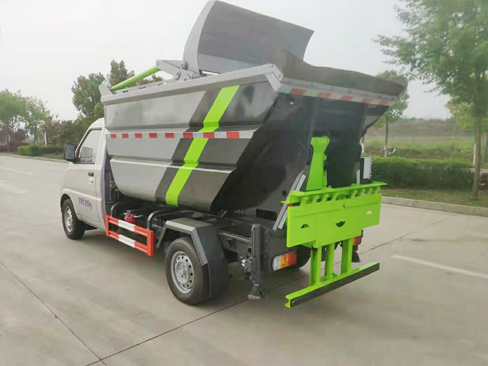 底盘电池提供动力,永磁同步电机驱动,可根据需要实时调速,取力操作与底盘行驶系统无任何关联,用车体验感极佳。优质高强度 Q345 锰钢制作无泄漏箱体,光电感应,海普瑞斯油缸、多路换向阀、齿轮油泵,手电一体 PLC 或 can 操作模式,带驾驶室操作。箱体垃圾刮板,后高位卸料装置,汉晟控制器。