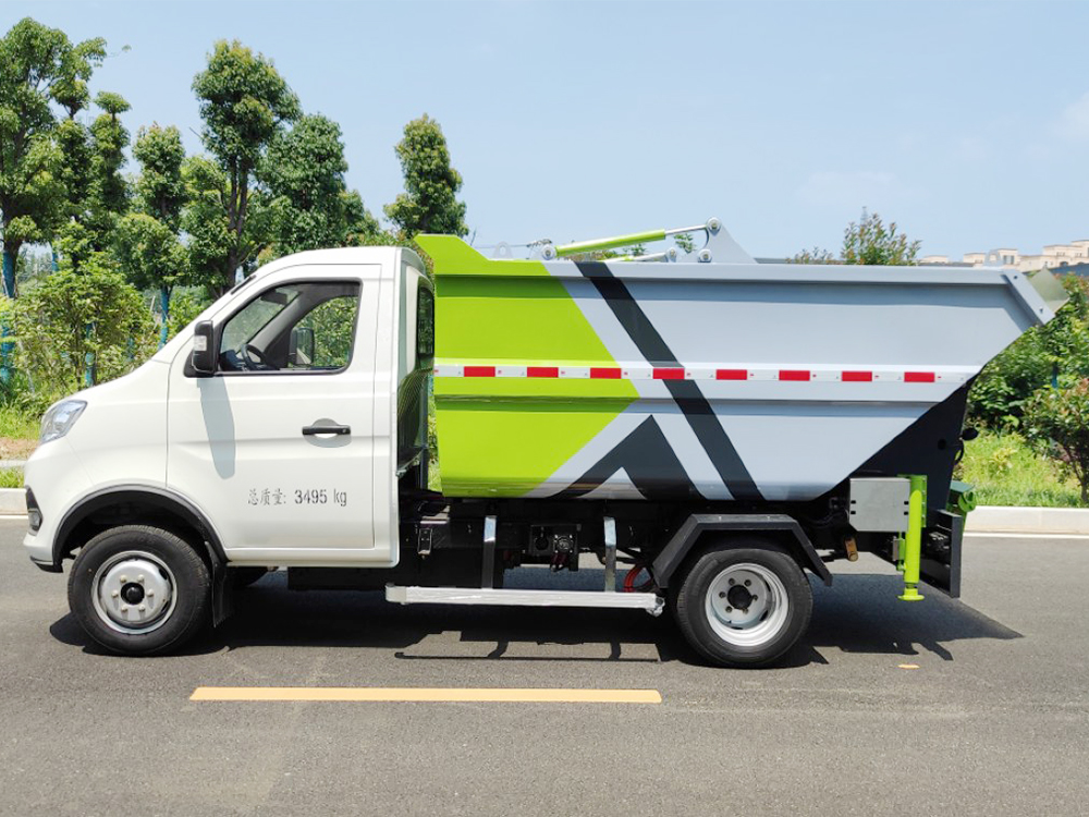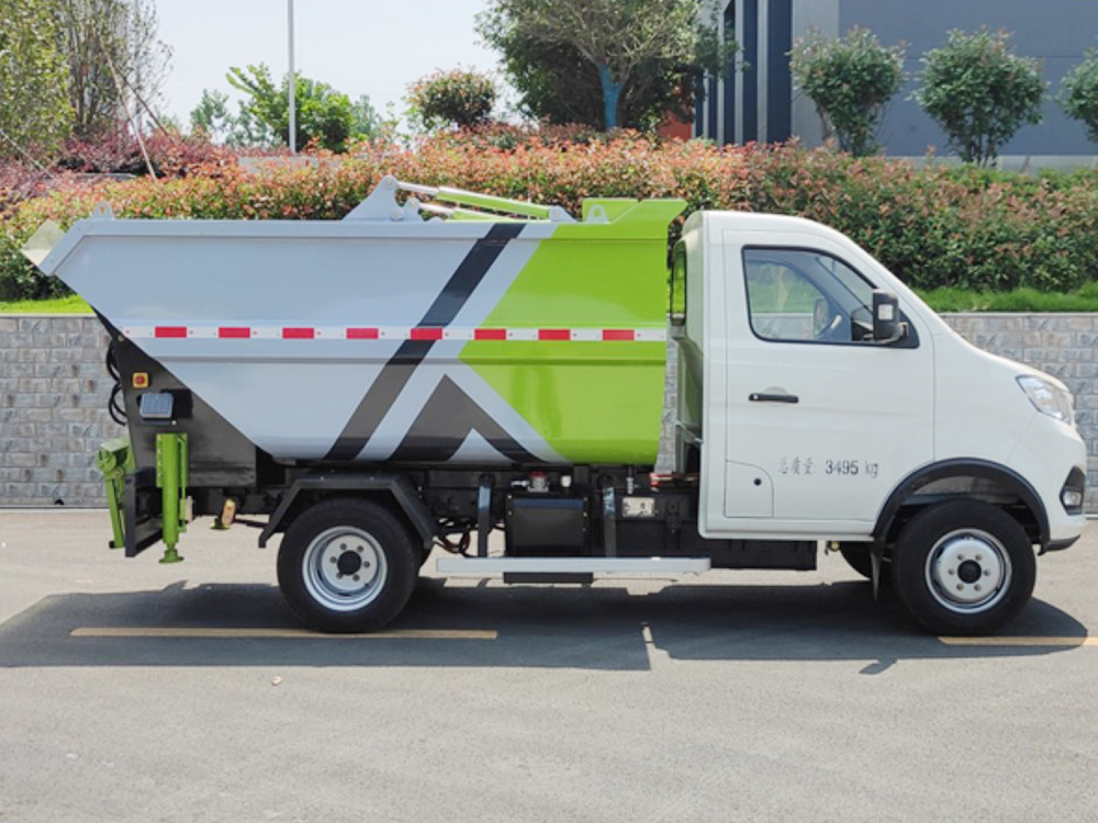 上装配置:底盘电池提供动力,永磁同步电机驱动,可根据需要实时调速,取力操作与底盘行驶系统无任何关联,用车体验感极佳。优质高强度 Q345 锰钢制作无泄漏箱体,光电感应,海普瑞斯油缸、多路换向阀、齿轮油泵,手电一体 PLC 或 can 操作模式,带驾驶室操作。箱体垃圾刮板,后高位卸料装置,汉晟控制器。