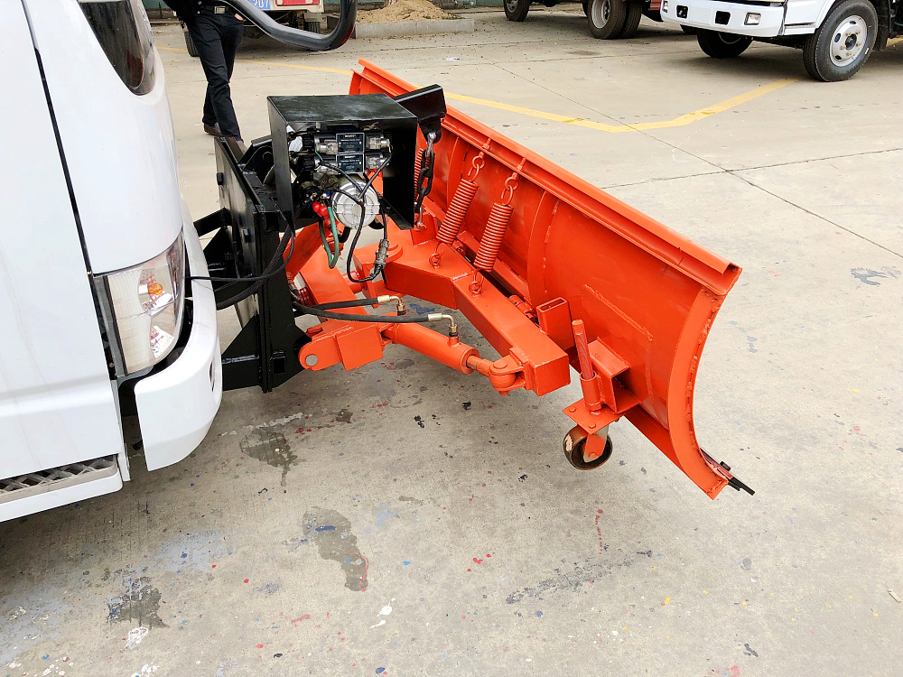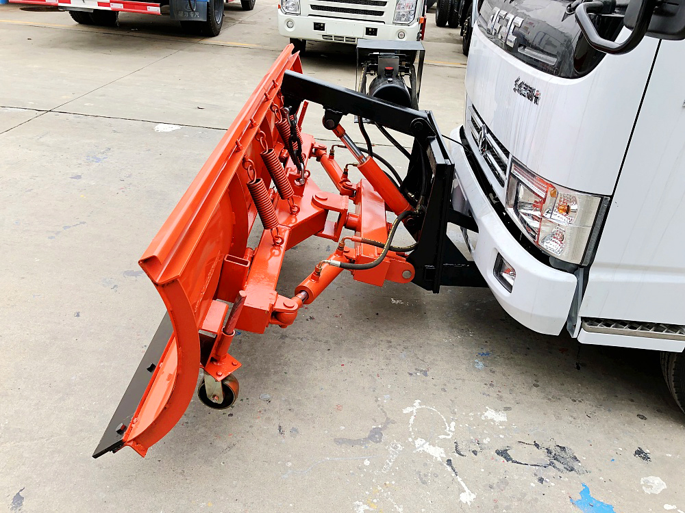 可安装在各类轻、中、重型货车上,除雪时雪铲下放。除雪效率高,除雪干净;汽车前进时如果遇到障碍物,雪铲会自动翻转避开,待越过障碍物后,在拉簧作用力下雪板会自动复位;除雪过程中,积雪会飞向路边。 三、除雪铲用途: