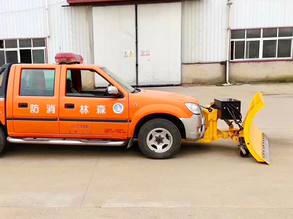 可安装在各类轻、中、重型货车上,除雪时雪铲下放。除雪效率高,除雪干净;汽车前进时如果遇到障碍物,雪铲会自动翻转避开,待越过障碍物后,在拉簧作用力下雪板会自动复位;除雪过程中,积雪会飞向路边。 三、除雪铲用途: