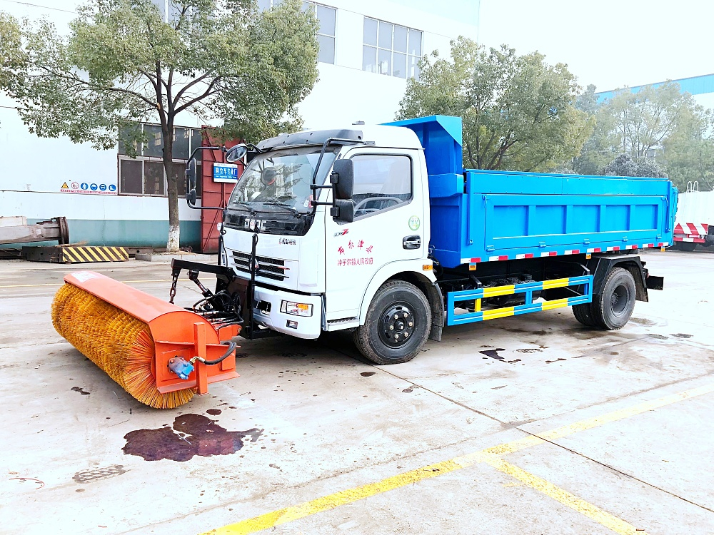 东风大多利卡自卸垃圾车带滚刷扫雪机的用途是清除道路上的冰雪,广泛使用于高等级公路、城市道路、机场、广场、风景区道路的除雪、融雪、除冰作业,相对于人工除雪,使用机械除雪具有更优的时效性,大幅提高除雪效率,减少人工劳动强度。使用东风大多利卡自卸垃圾车带滚刷扫雪机可以在冬季期间投入它们来确保道路上冰雪的清除以及行车的安全。除雪车安装的推雪铲或扫雪滚刷具有越障功能,能够很好的处理各种路面的雪和冰,如浮雪,薄雪,薄冰等,同时它可以在凹凸不平的路面行驶,作业及回避路障,工作效率高。