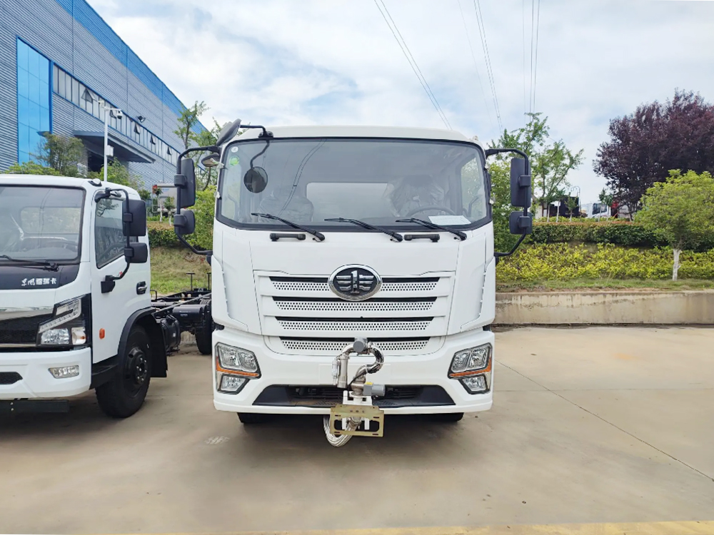 | 整车说明: | 1、该车主要用于城乡道路洒水及园林绿化。主要专用装置由罐体、喷洒系统组成。当安装电子洒水炮装置时,整车长8970mm,前伸380mm,当不安装电子水炮时整车长为8590mm。罐体总容量:11.69立方米,有效容积:11.16立方米,介质:丙酮水溶液.密度:950千克/立方米,罐体尺寸为(长×宽×高) (mm):4800×2300×1530;2.侧、后防护均采用Q235,均采用螺栓连接,后防护截面尺寸(宽×高) (mm):50×150,下边缘离地高480mm;3. 选装后平台样式,选装后喷雾装置,选装罐体上罐口位置管道箱外观及后喷洒样式,选装前喷洒样式,选装气动装置,选装踏梯样式,选装方形挡泥板;选装箭头灯,仅在作业时使用,行驶过程中不可点亮。4、ABS防抱死制动系统生产厂家/型号:1.长春科密汽车制动有限公司/CM4XL;2.浙江万安科技股份有限公司/VIE ABS-II。安装限速装置,限速89km/h。随底盘选装驾驶室。 | ||