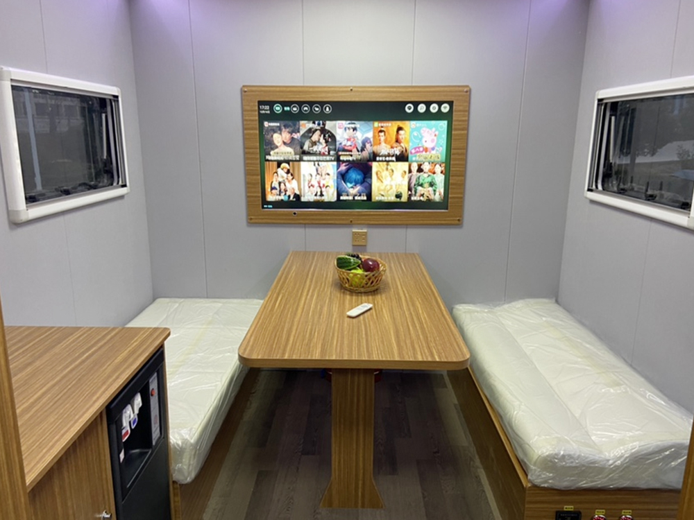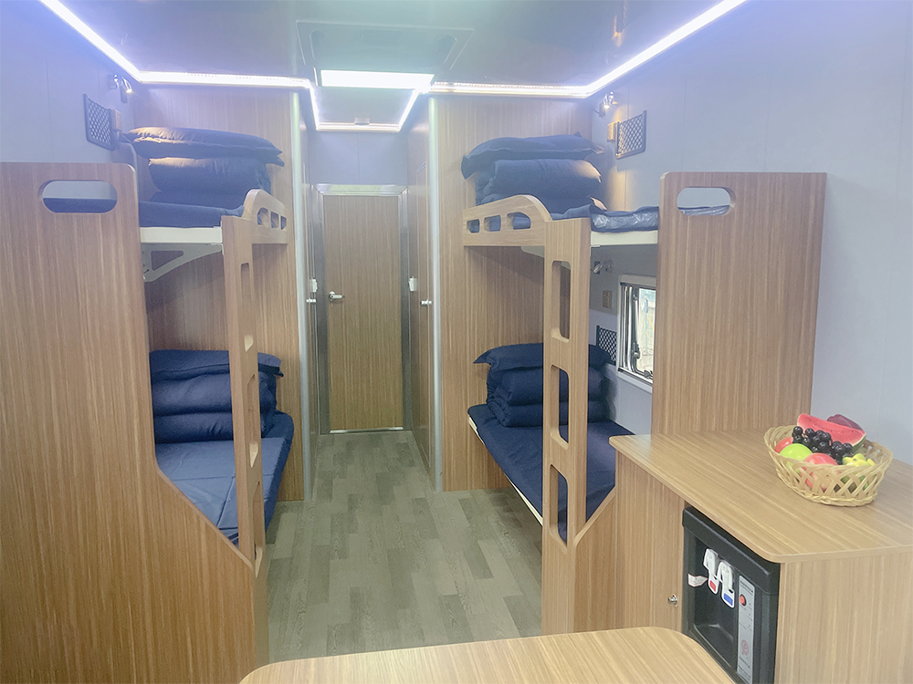 宿营车主要由重汽豪沃二类汽车底盘、宿营方舱、宿营设施,空气调节系统、淋浴系统、水路系统、电气系统等组成。能够满足6人的住宿。具有舒适的就寝环境及齐全的卫生设施。车辆改装设计:整车改装设计符合国家对汽车设计改装的相关要求;在保证运载工具行驶安全的前提下,充分利用汽车底盘的有效载荷及底盘尺寸;能满足车载设备安装、运行和人员工作、生活需要。整车机动灵活、可靠性高、环境适应性好,性价比高。能够满足6人的住宿,淋浴、洗漱、阅读,空间利用率高。 |