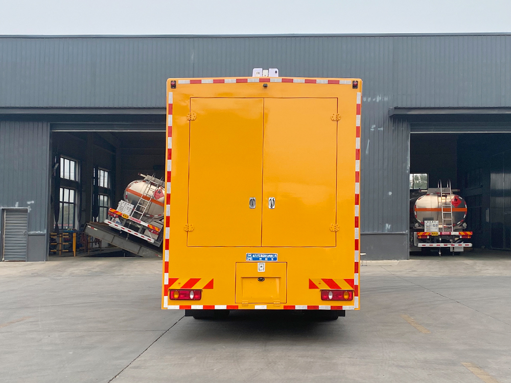 | 整车说明: | 车厢顶部封闭,不可开启; 车辆主要专用装置:装有静音车厢、发电机组、电缆卷盘、救险设备、输电装置,电焊机,光源,气源,电源设备等主要用于应急抢险救援; 整车长/轴距/前悬/后悬对应关系为(mm):7380/1400(1430)/3800/2180(2150),7680/1400(1430)/3800/2480(2450),8080/1400(1430)/4500/2180(2150),8380/1400(1430)/4500/2480(2450),8280/1400(1430)/4700/2180(2150),8580/1400(1430)/4700/2480(2450),8500/1400(1430)/5000/2100(2070),8580/1400(1430)/5000/2180(2150),8880/1400(1430)/5000/2480(2450),9180/1400(1430)/5000/2780(2750),9180/1455/5000/2725; 左右侧面及后下部防护均为裙板结构,后下防护离地高度480mm; 随底盘选装限速装置,限速89km/h; ABS型号/生产厂家:3631010-C2000/东科克诺尔商用车制动系统(十堰)有限公司,ABS 8/东科克诺尔商用车制动系统(十堰)有限公司, 4460046450/威伯科汽车控制系统(中国)有限公司,J ABS/焦作瑞克控制技术有限公司。 | ||