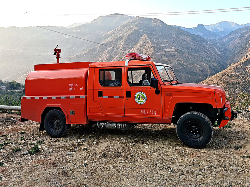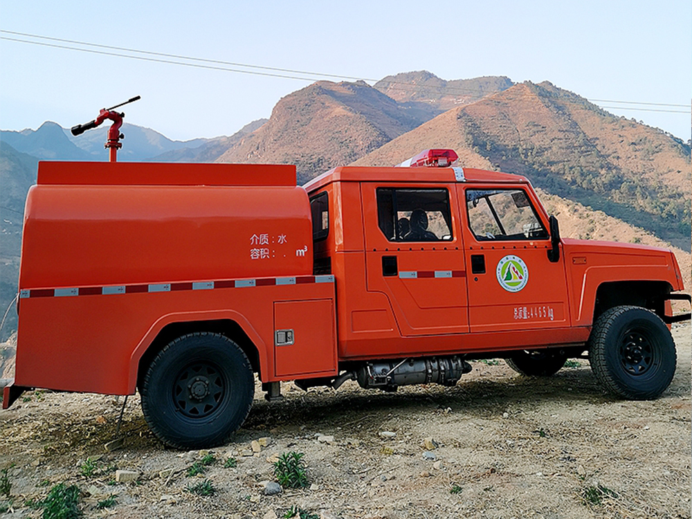 上装配置:罐体采用武钢QB235板材4mm、罐体容积1.92立方,实际容积2立方,安装取力器,65QZ40/50型水泵,射程可达30米,顶置水炮,选装前冲后洒,后置对开门**箱。