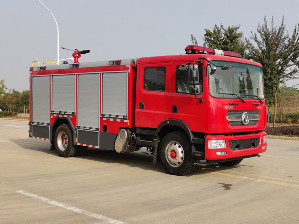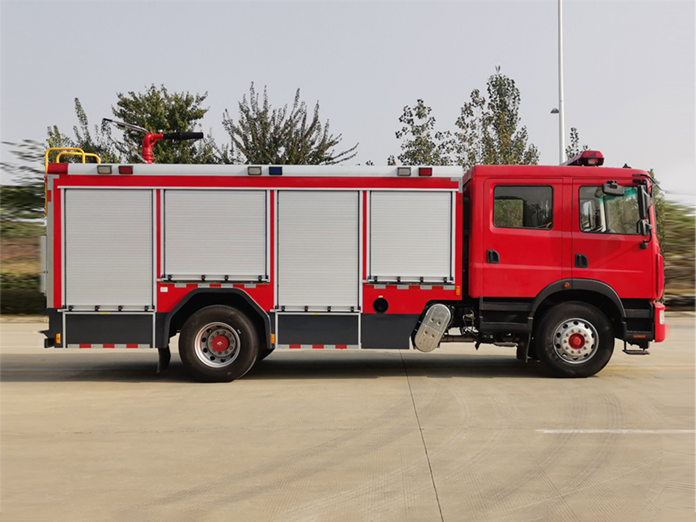 消防泵在箱体中间或者后置,泵房左右两侧4个出水口、器材箱左右后侧均有新款易拉高强度铝合金卷帘门。