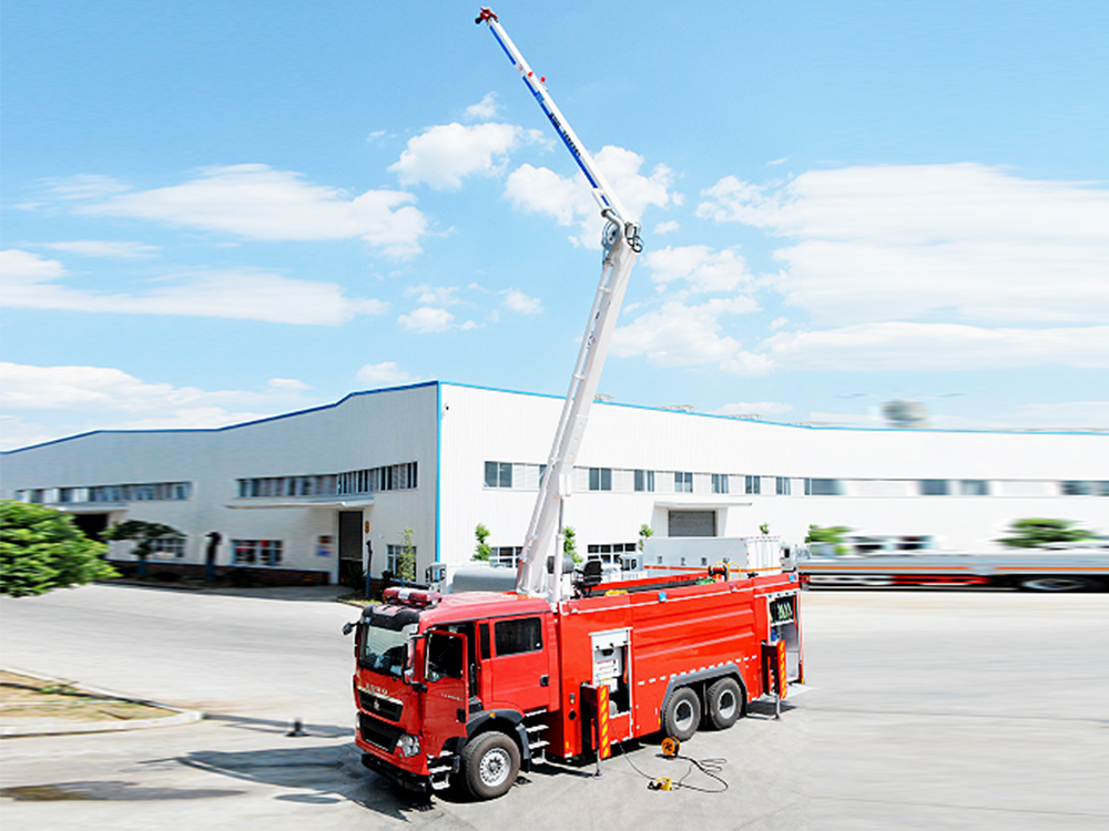 泡沫消防车 > 国六豪沃后双桥12立方18米举高喷射消防车: