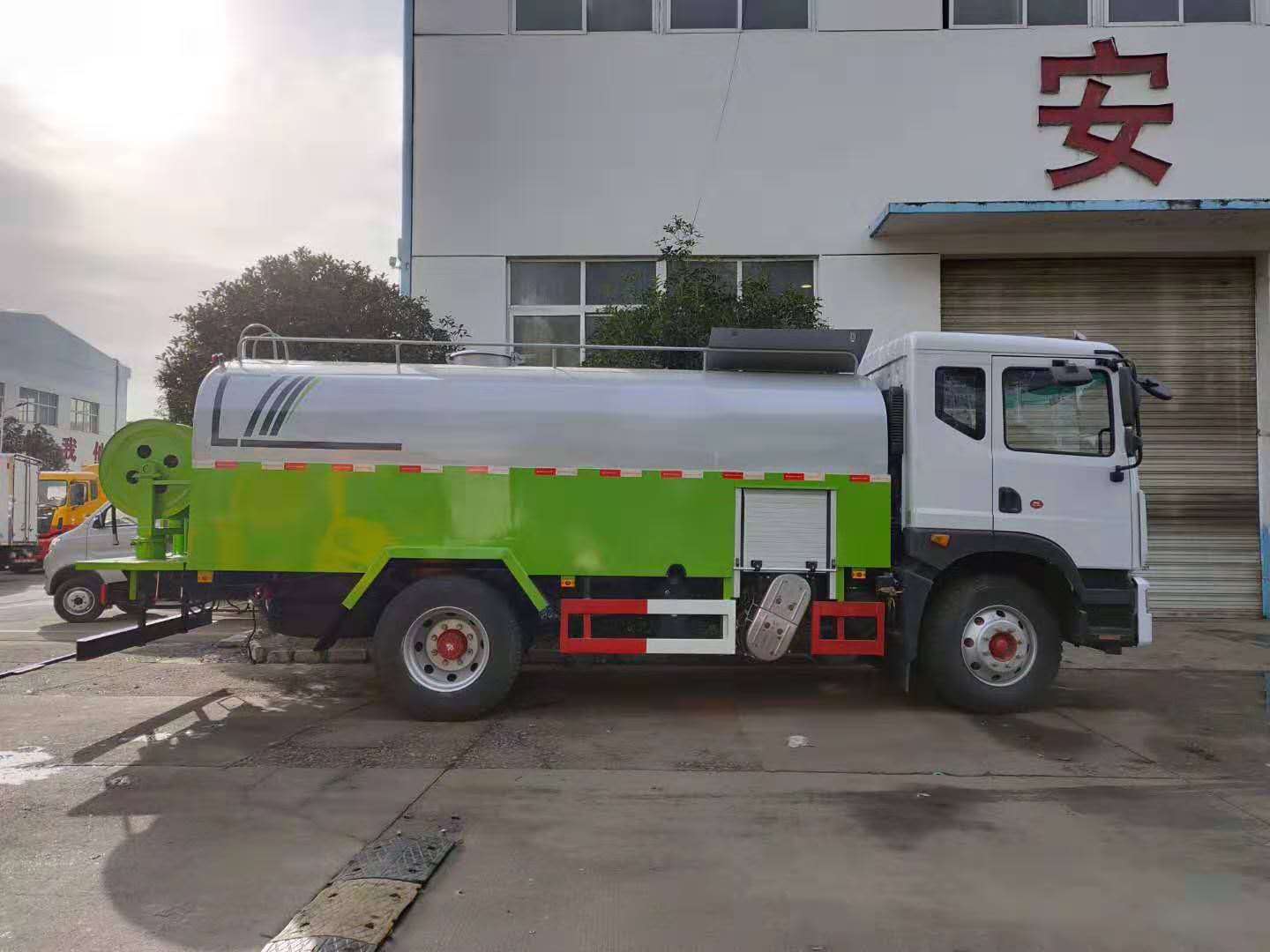 | 整车说明: | 1,罐体有效容积:10.42立方米,罐体外形尺寸(长×宽×高)(mm):5000(罐体前端1200mm为高压泵)×2300×1500;整车长度/轴距/的对应关系为(mm):7700/3950,8250/4500,8450/4700,8750/5000,9050/5300,9350/5600;2,侧防护及后下部防护装置均采用Q235B碳钢,侧防护及后防护均采用焊接连接,后下部防护尺寸:120×50(mm),离地面高度470mm.3,ABS系统生产厂家,型号 :焦作博瑞克控制技术有限公司,J ABS.随底盘选装驾驶室. | ||