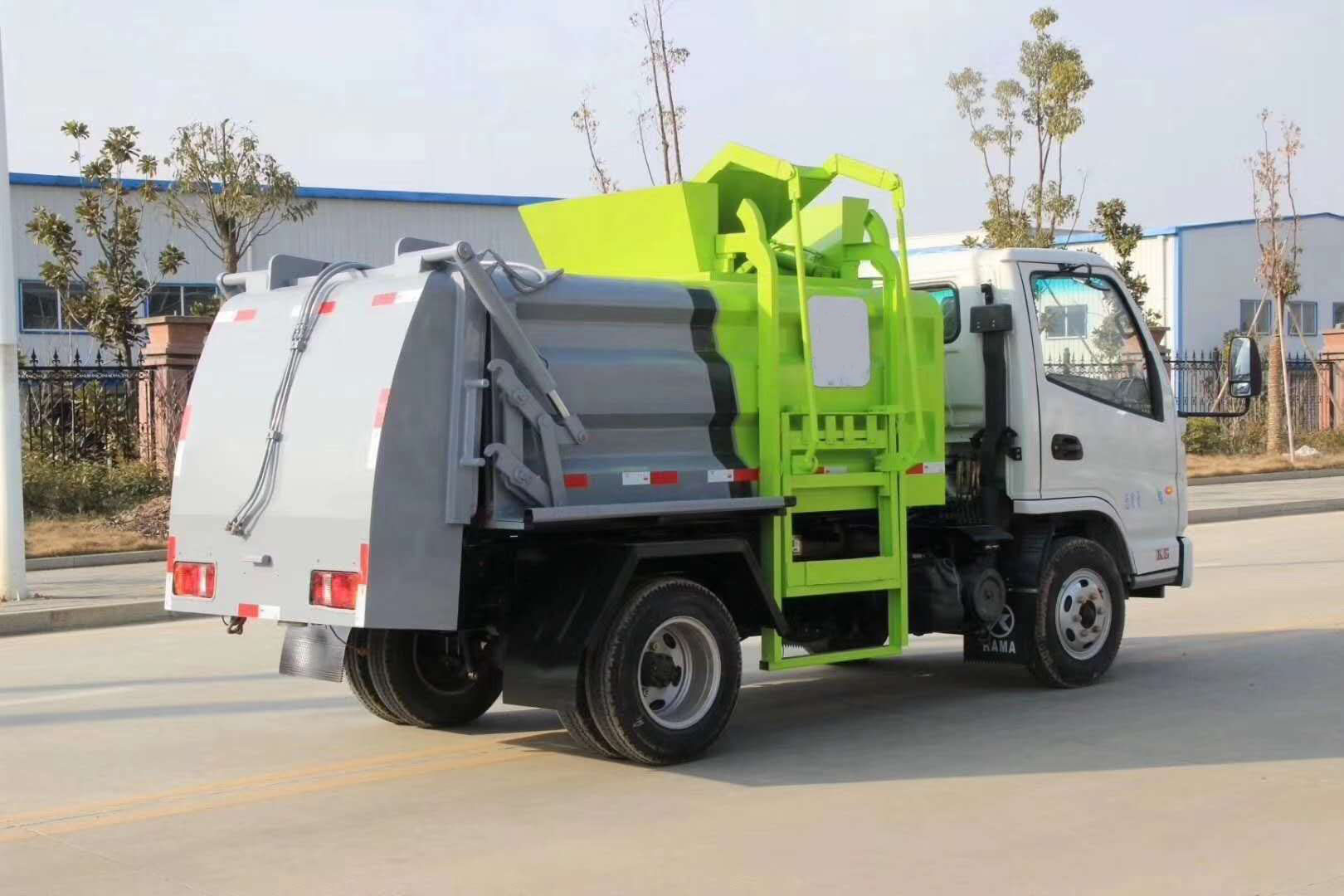 | 整车说明: | 1、该车仅选用2800mm轴距底盘。2、可选装内部卸料装置,不影响整车外观,但会引起整车重量变化,选装相关配置时整备质量/额定载质量对应关系为(kg):无推板装置时:3400/965,3650/715。选装推板装置时:3850/515。3、防护材料:Q235B碳钢,连接方式:左侧面防护采用焊接连接,右侧面防护及后下部防护由专用装置代替,后部专用装置离地高度(mm):480。4、ABS型号:CM4XL-4S/4M,ABS生产企业:广州瑞立科密汽车电子股份有限公司。5、专用装置:侧装垃圾桶提升装置,主要用于餐厨垃圾收集及转运。6、随底盘选装驾驶室。 | ||