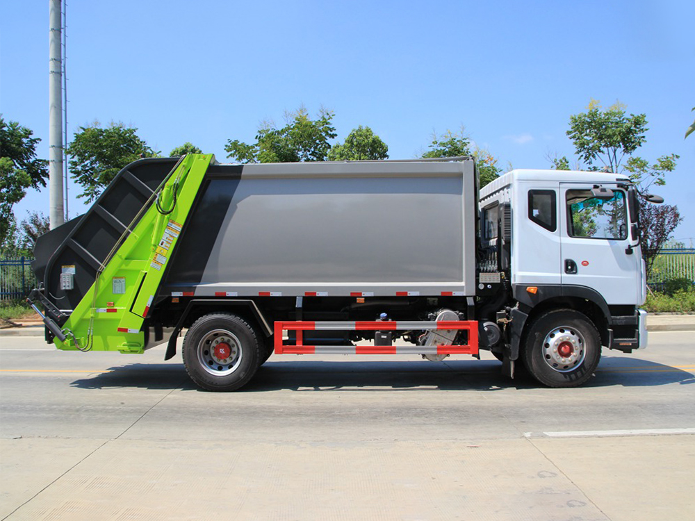 | 整车说明: | 1、该车选用3950和4500两种轴距底盘。2、随底盘选装驾驶室。3、该车有五种可选翻转样式,A:三角斗装置,B:挂桶装置,C:摆臂装置,D:大落地斗装置,E:无后翻转装置。当选择ABCD时,该车整车长(mm)/轴距(mm)/后悬(mm)/整备质量(Kg)的对应关系为:7690/3950/2510/8900,8240/4500/2510/9700;当选择E时,该车整车长(mm)/轴距(mm)/后悬(mm)的对应关系为:7450/3950/2270,8000/4500/2270。4、防护材料:Q235B碳钢,左右侧面防护连接方式为螺栓连接;后部防护由专用装置代替,离地高度480mm。5、ABS系统生产厂家,型号 :焦作博瑞克控制技术有限公司,J ABS.安装具有卫星定位功能的行驶记录仪。6、仅采用发动机与油耗值对应关系为(L/100km):YC4EG170-50/26.0,YC4EG185-50/26.3,ISB180 50/27.8,ISD160 50/26.3。7、专用装置:箱体。主要用于城镇环卫垃圾的收集与运输。8、该车可选装三缸大落地斗装置和摆臂装置外观,以及两缸摆臂装置、三角斗装置和大落地斗装置外观。随底盘选装驾驶室。 | ||