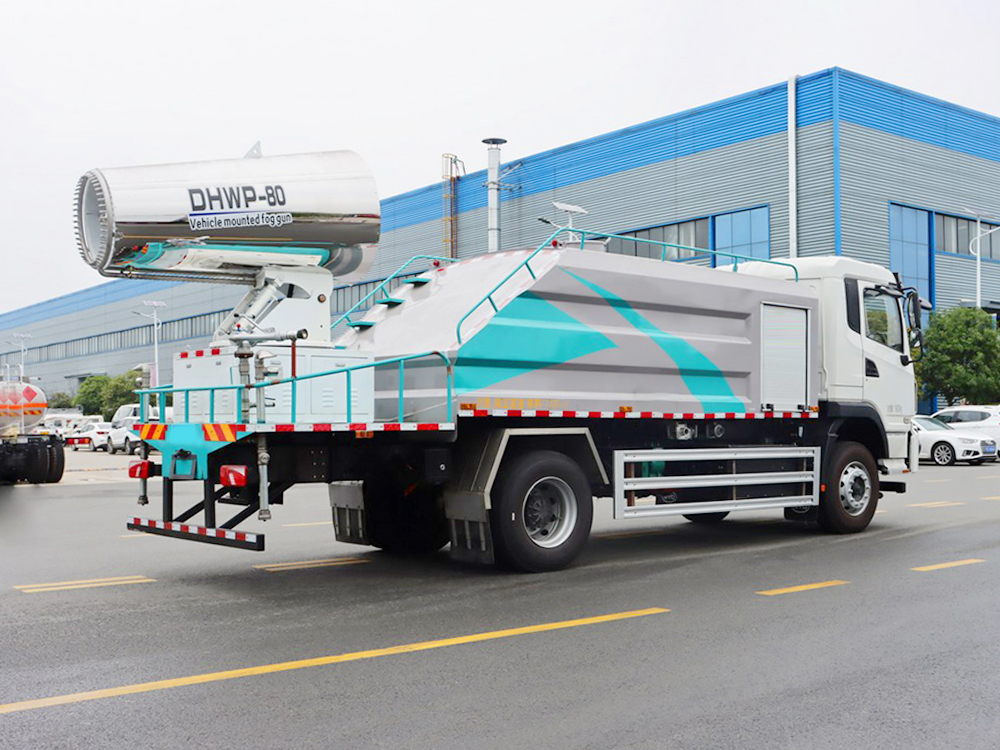 上装配置:底盘电池提供动力,永磁同步电机驱动,可根据需要实时调速,取力操作与底盘行驶系统无任何关联,用车体验感极佳。碳钢箱体带防腐防锈、低水位报警系统。倒车及高炮状态室内监控系统,40/50(10方以上60/90或50/110)威龙离心式低压水泵,前冲、后洒、不锈钢电子高炮均为自动控制。铝合金后平台、侧防护。后平台30--60米(10方以上80-100米)雾炮机组,机组电机为永磁同步电机。