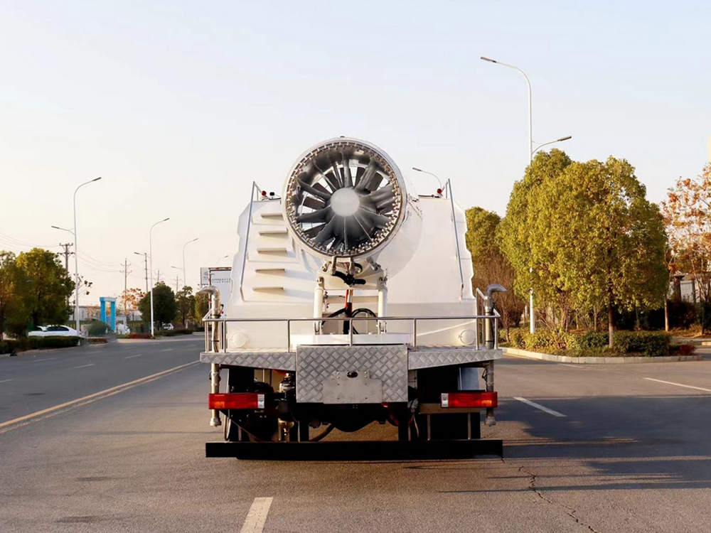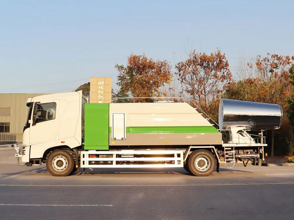 功能:前冲、后洒、侧喷、高压卷盘、后置80米不锈钢纯电动雾炮。