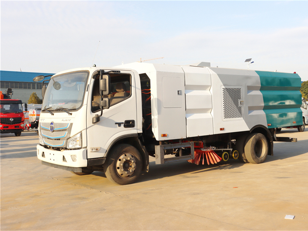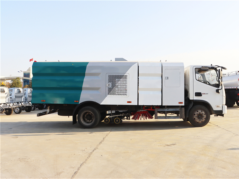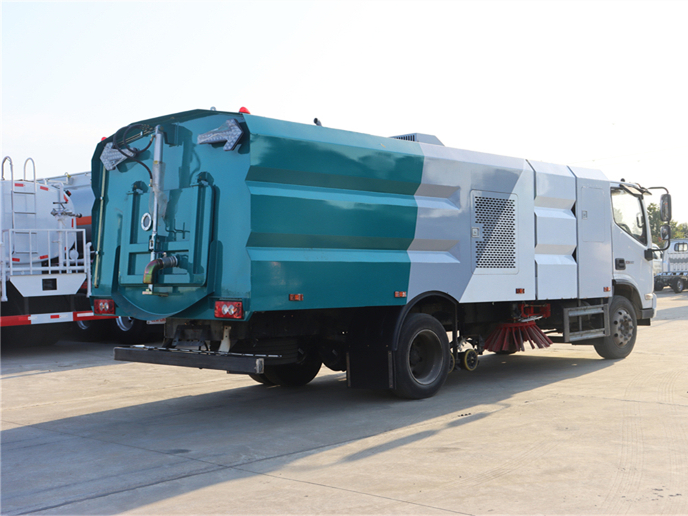 上装配置:底盘电池提供动力,永磁同步电机驱动,可根据需要实时调速,取力操作与底盘行驶系统无任何关联,用车体验感极佳。中置2扫盘,三洋马达,GTM高压水泵,皖液齿轮泵,海普瑞斯液压油缸,万向高压路沿清洗,免维护离心式风机,不锈钢水箱、垃圾箱,不锈钢高压管路、施耐德控制开关、美国传感器、尾部LED箭头灯;垃圾箱、水箱均带防溢或低水位报警装置,倒车及洗扫状态室内监控系统,尾部带电控操作系统,20M高压冲洗卷盘,最大清扫宽度3.5m,高压冲洗21m。 电气系统由底盘车电路专用工作装置操作控制电路组成。