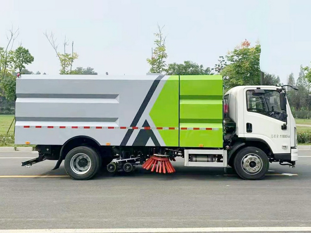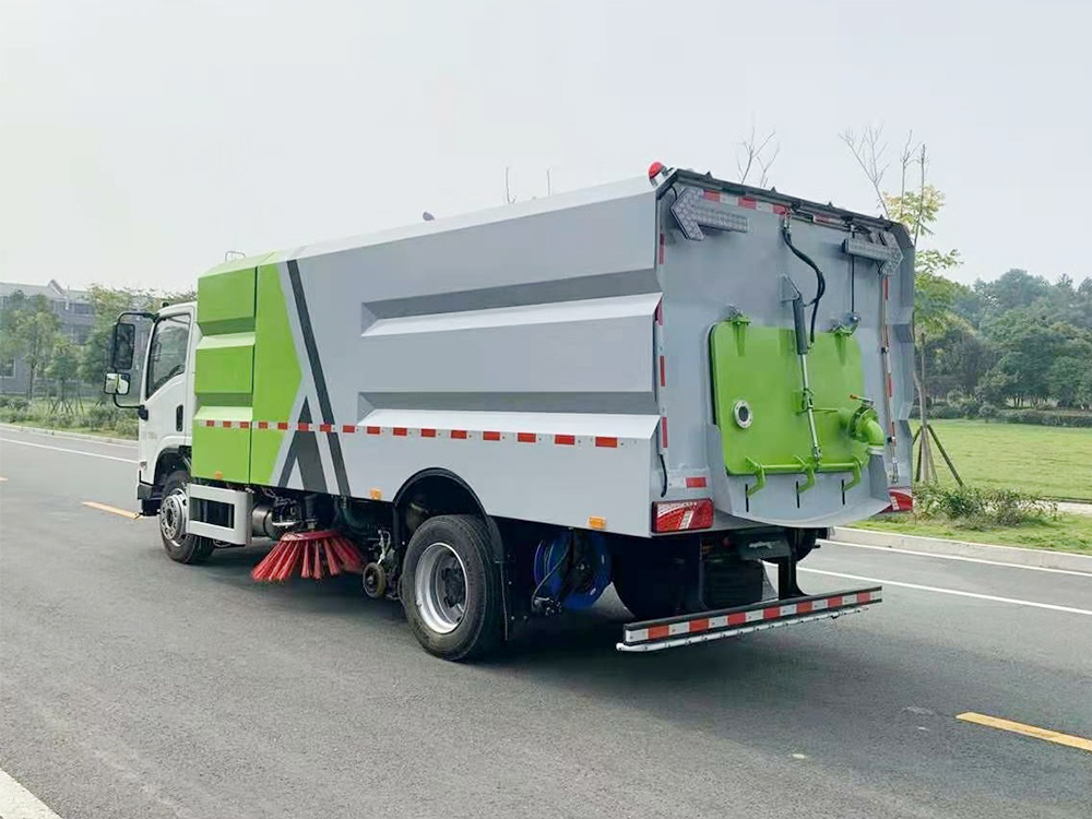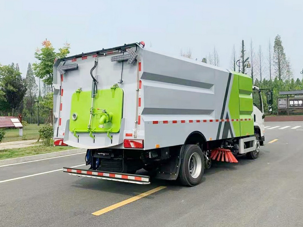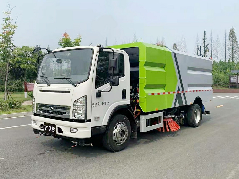 上装配置:底盘电池提供动力,永磁同步电机驱动,可根据需要实时调速,取力操作与底盘行驶系统无任何关联,用车体验感极佳。中置2扫盘,三洋马达,GTM高压水泵,皖液齿轮泵,海普瑞斯液压油缸,万向高压路沿清洗,免维护离心式风机,不锈钢水箱、垃圾箱,不锈钢高压管路、施耐德控制开关、美国传感器、尾部LED箭头灯;垃圾箱、水箱均带防溢或低水位报警装置,倒车及洗扫状态室内监控系统,尾部带电控操作系统,20M高压冲洗卷盘,最大清扫宽度3.5m,高压冲洗21m。 电气系统由底盘车电路专用工作装置操作控制电路组成。