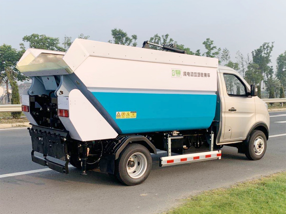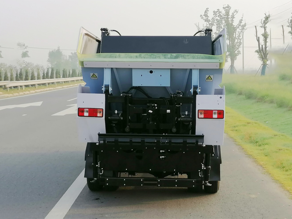 上装配置:底盘电池提供动力,永磁同步电机驱动,可根据需要实时调速,取力操作与底盘行驶系统无任何关联,用车体验感极佳。优质高强度 Q345 锰钢制作无泄漏箱体,光电感应,海普瑞斯油缸、多路换向阀、齿轮油泵,手电一体 PLC 或 can 操作模式,带驾驶室操作。箱体垃圾刮板,后高位卸料装置,汉晟控制器。