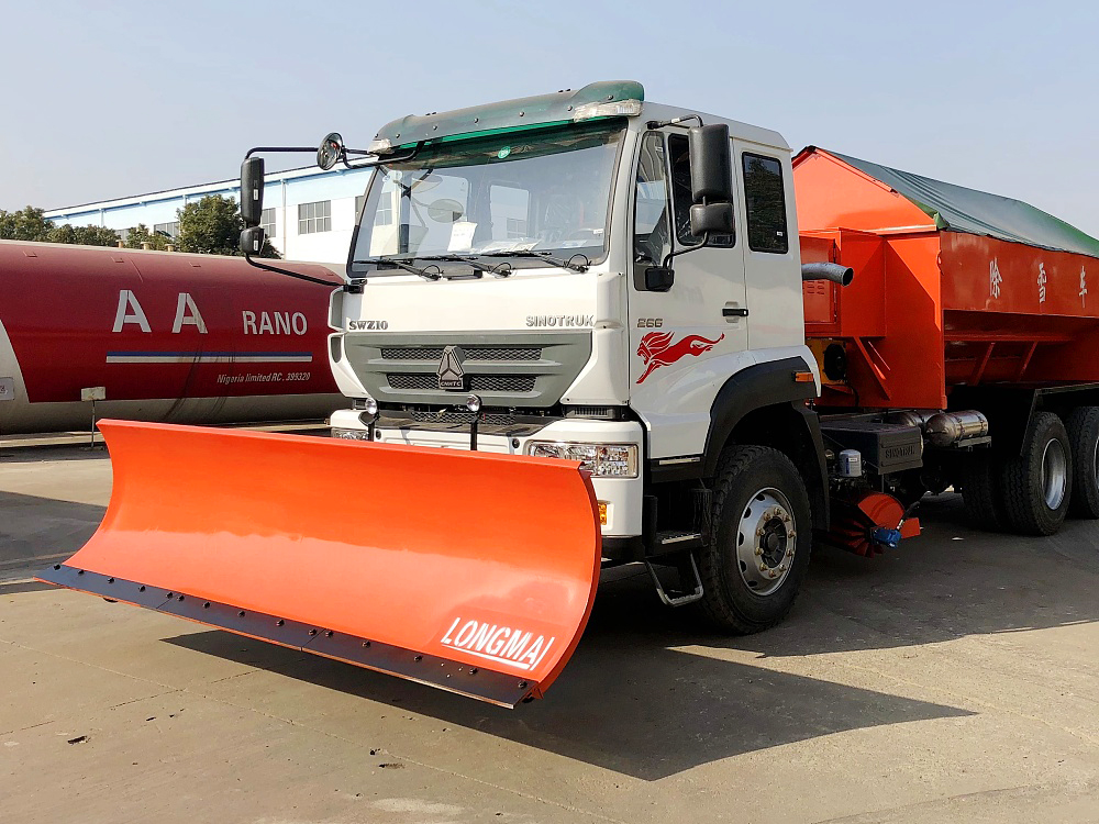 5、除雪铲结构合理,低速作业时可将雪推向一侧,高速作业时能将雪抛起;