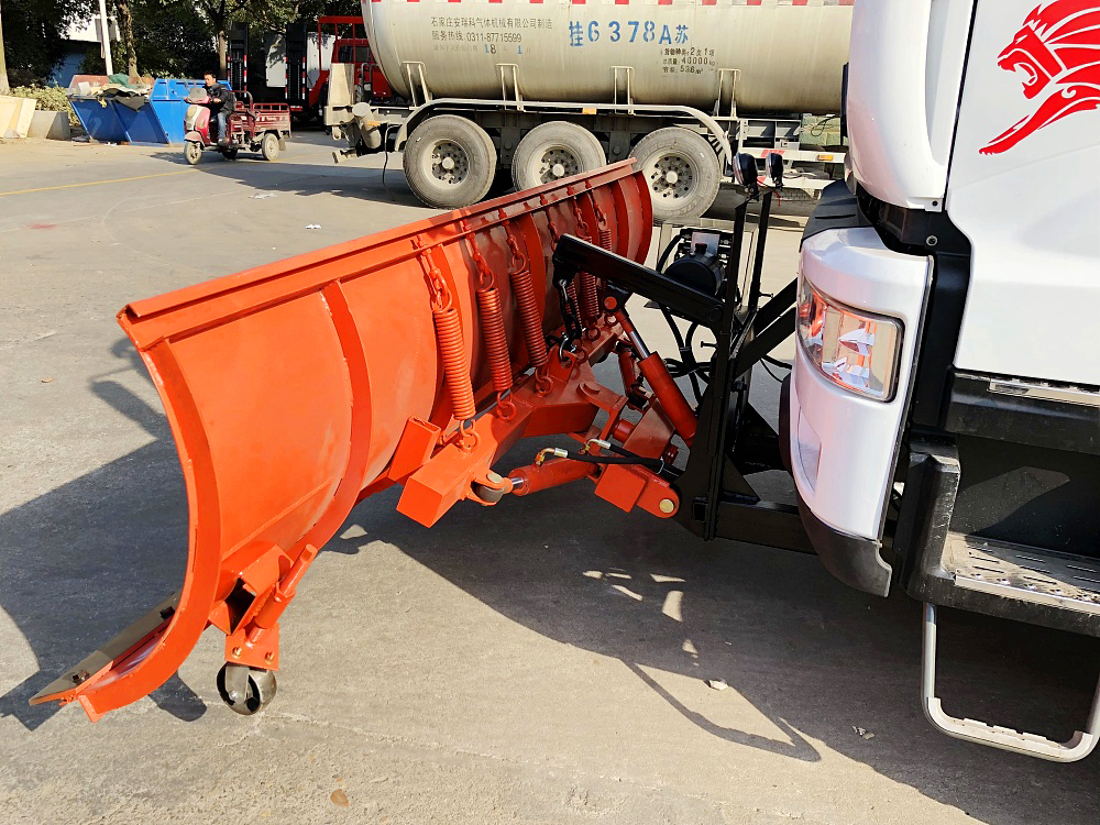可安装在各类轻、中、重型货车上,除雪时雪铲下放。除雪效率高,除雪干净;汽车前进时如果遇到障碍物,雪铲会自动翻转避开,待越过障碍物后,在拉簧作用力下雪板会自动复位;除雪过程中,积雪会飞向路边。 三、除雪铲用途: