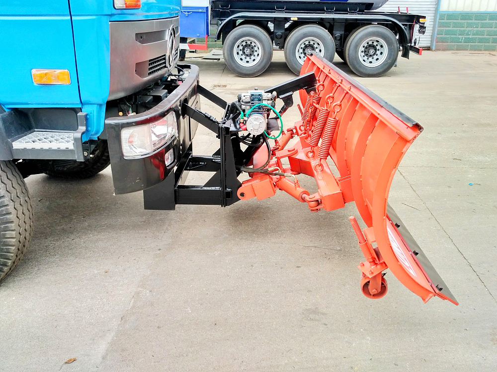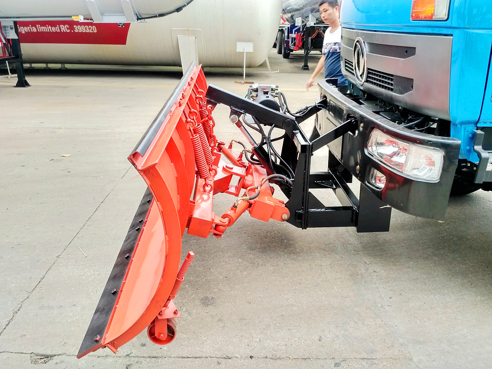可安装在各类轻、中、重型货车上,除雪时雪铲下放。除雪效率高,除雪干净;汽车前进时如果遇到障碍物,雪铲会自动翻转避开,待越过障碍物后,在拉簧作用力下雪板会自动复位;除雪过程中,积雪会飞向路边。 三、除雪铲用途: