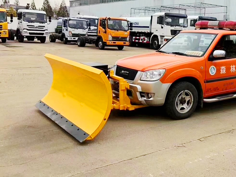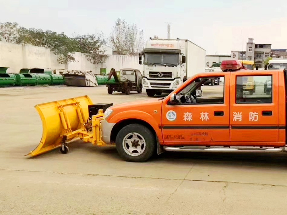 可安装在各类轻、中、重型货车上,除雪时雪铲下放。除雪效率高,除雪干净;汽车前进时如果遇到障碍物,雪铲会自动翻转避开,待越过障碍物后,在拉簧作用力下雪板会自动复位;除雪过程中,积雪会飞向路边。 三、除雪铲用途: