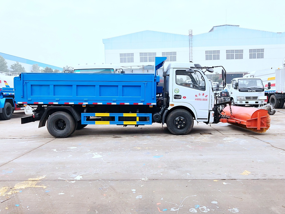 东风大多利卡自卸垃圾车带滚刷扫雪机的用途是清除道路上的冰雪,广泛使用于高等级公路、城市道路、机场、广场、风景区道路的除雪、融雪、除冰作业,相对于人工除雪,使用机械除雪具有更优的时效性,大幅提高除雪效率,减少人工劳动强度。使用东风大多利卡自卸垃圾车带滚刷扫雪机可以在冬季期间投入它们来确保道路上冰雪的清除以及行车的安全。除雪车安装的推雪铲或扫雪滚刷具有越障功能,能够很好的处理各种路面的雪和冰,如浮雪,薄雪,薄冰等,同时它可以在凹凸不平的路面行驶,作业及回避路障,工作效率高。