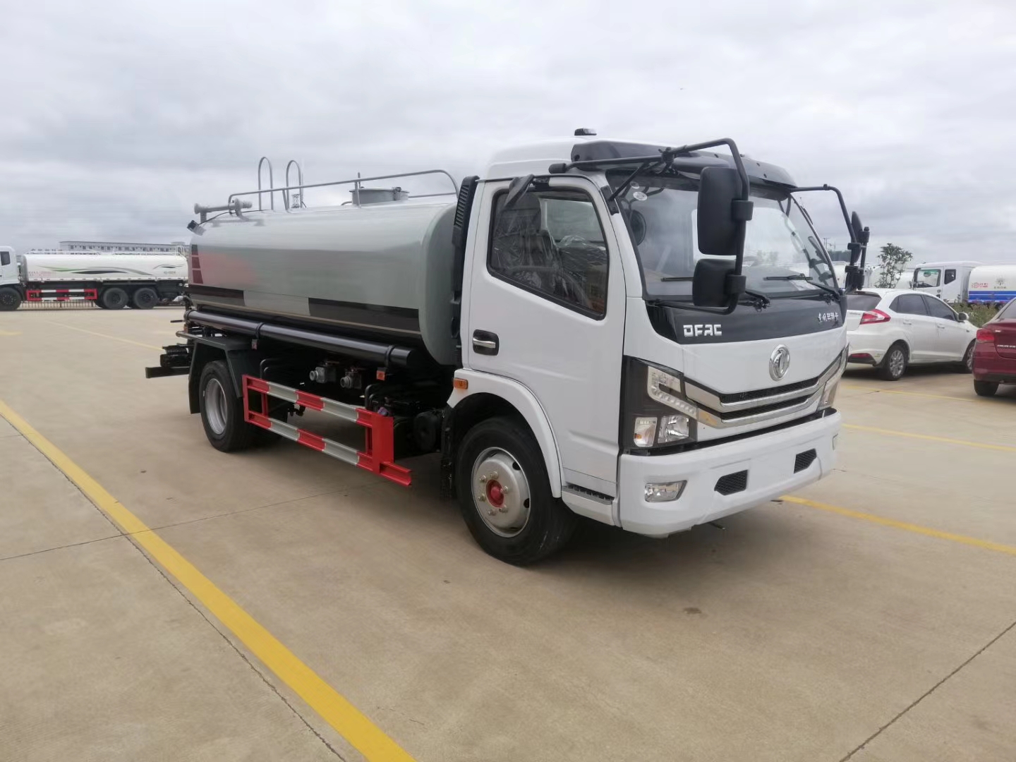 | 整车说明: | 1、该车主要专用装置为罐体,喷洒系统,主要用于街道、广场、小区等消毒作业及防疫预防。仅选用3950mm轴距改装。罐体总容量12.35立方米,罐体有效容积11.76立方米。2.当选装前冲电子水炮时,整车外形长/前伸/前悬/后悬对应关系(mm):8260//500/1260/2550,8210/500/1260/2500,8420/500/1420/2550,8370/500/1420/2500,7860/500/1260/2150,8020/500/1420/2150;当选装无前冲电子水炮时,整车外形长/前伸/前悬/后悬对应关系(mm):7760/0/1260/2550,7710/0/1260/2500,7920/0/1420/2550,7870/0/1420/2500,7360/0/1260/2150,7520/0/1420/2150。3.罐体外形(长×长轴×短轴)对应关系(mm):4100×2360×1600。4.侧、后防护材料为Q235B,连接方式:侧,后防护均采用螺栓连接,后防护截面尺寸(宽×高)(mm):50×150,离地高460mm;5.ABS型号及生产厂家为:ABS/ASR-24V-4S/4M/襄阳东风隆诚机械有限责任公司,J ABS/焦作博瑞克控制技术有限公司。6.选装限速装置,限速89km/h。7.选装新款前冲水炮样式。选装大平台带雾炮样式。选装大平台不带雾炮样式。选装燃油箱,电瓶,尿素罐,储气筒左右安装位置。选装后部平台样式。选装轮罩样式。选装前置鸭嘴,选装高位花洒,选装工具箱,选装后对冲,选装气动球阀。选装新款防护外观样式。选装气动球阀。选装箭头灯样式。选装后平台水炮样式。选装高位花洒。选装爬梯扶手。选装腰冲装置。选装方炮筒样式。选装无炮筒样式。选装上走道样式。 | ||