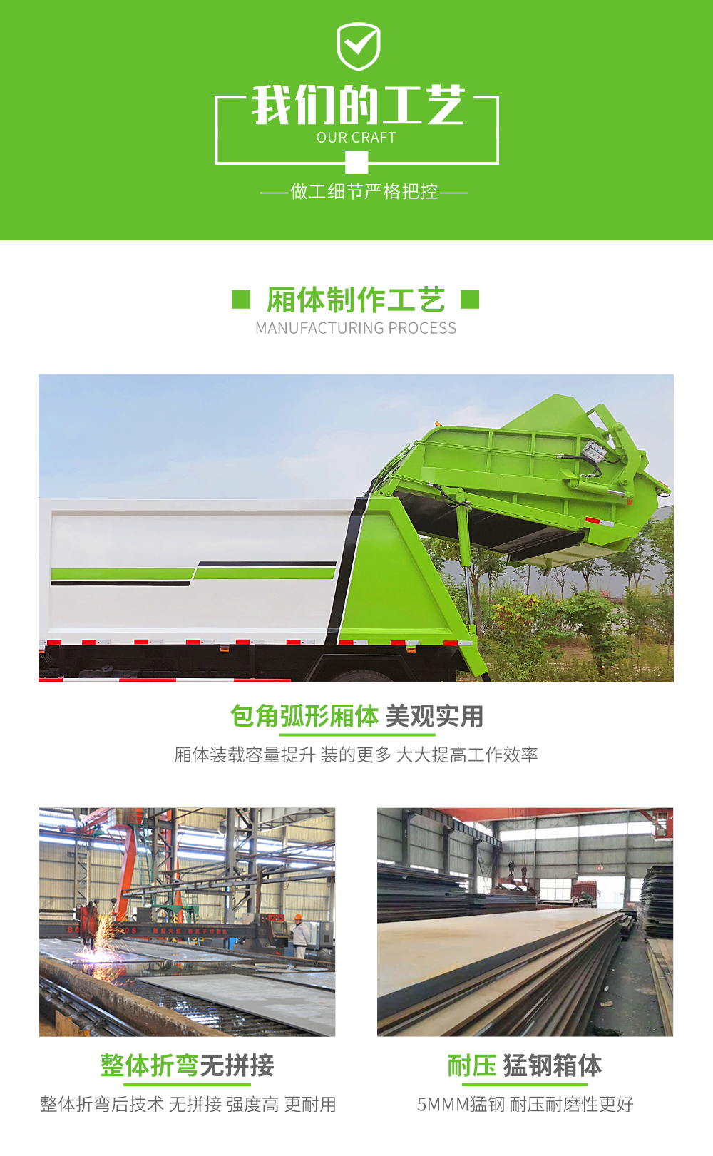 | 整车说明: | 1、该车主要专用装置由箱体、压缩系统组成,用于生活垃圾的收集与清运;2、仅采用3280mm轴距,随底盘选装驾驶室,选装后部工作装置,整车外形长/前悬/后伸对应关系为(mm):6950/1180/400,6850/1180/300,6700/1180/150,6930/1160/400,6830/1160/300,6680/1160/150;当整备质量为6100kg时,对应的载质量为:2870kg(2人),2805kg(3人);当整备质量为5800kg时,对应的载质量为:3170kg(2人),3105kg(3人);3、侧防护材料:Q235,连接方式:螺栓连接+焊接,后防护由专用装置替代,下边缘离地高:445mm;4、ABS型号/厂家:ABS型号为XH-KQ4S4M-E01,生产企业为广州市西合汽车电子装备有限公司;型号为CM4XL-4S/4M,生产企业为广州瑞立科密汽车电子股份有限公司;型号为VIE ABS-Ⅱ,生产企业为浙江万安科技股份有限公司。仅采用的发动机型号与油耗值(L/100km)对应关系: WP2.3NQ130E61/16.26,WP2.3Q140E62A/16.5,WP2.3Q140E62/16.5,D30TCIF1/16.43,WP3NQ160E61/17.10,WP2.5NQ160E61/17.49,WP2.5NQ150E61/17.49;5、随底盘选装限速装置,限速(km/h):80.可选装直接供电式ETC车载装置.选装工作灯,该灯仅在夜间工作时起照明作用,行驶过程中不可点亮.随底盘选装驾驶室,车贴拉花,轮毂,选装控制盒 | ||