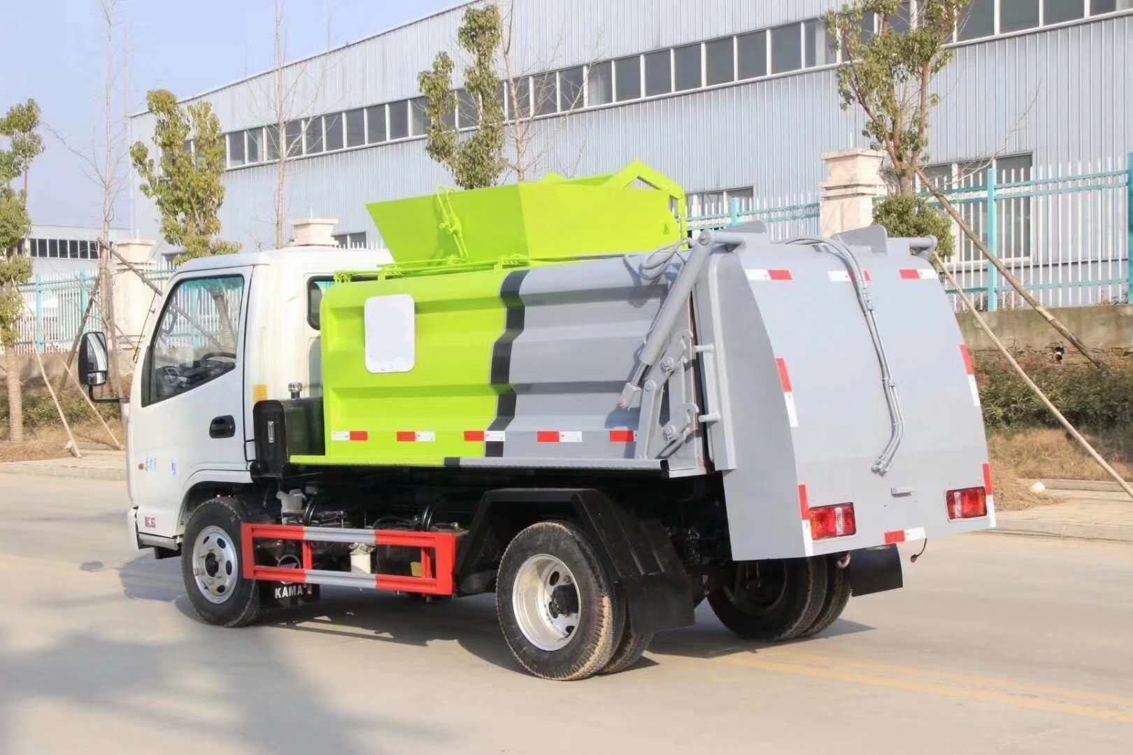 | 整车说明: | 1、该车仅选用2800mm轴距底盘。2、可选装内部卸料装置,不影响整车外观,但会引起整车重量变化,选装相关配置时整备质量/额定载质量对应关系为(kg):无推板装置时:3400/965,3650/715。选装推板装置时:3850/515。3、防护材料:Q235B碳钢,连接方式:左侧面防护采用焊接连接,右侧面防护及后下部防护由专用装置代替,后部专用装置离地高度(mm):480。4、ABS型号:CM4XL-4S/4M,ABS生产企业:广州瑞立科密汽车电子股份有限公司。5、专用装置:侧装垃圾桶提升装置,主要用于餐厨垃圾收集及转运。6、随底盘选装驾驶室。 | ||