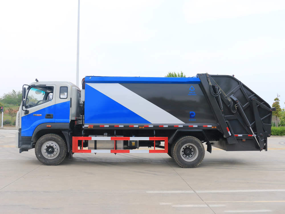 | 整车说明: | 随底盘选装前部格栅及LOGO风格。仅采用4500mm轴距。后伸430mm。侧防护材料:Q235B碳钢,连接方式:螺栓连接,后防护由专用装置代替,下边缘离地高为480mm。发动机WP4.6NQ220E61的油耗值为25.89L/100km。ABS型号为CM4XL-4S/4M,生产厂家为广州瑞立科密汽车电子股份有限公司。安装具有卫星定位功能的行驶记录仪。该车专用装置:液压机构和填塞器,主要用于城镇环卫垃圾的运输。选装油缸样式及尾部后翻转机构样式。 | ||