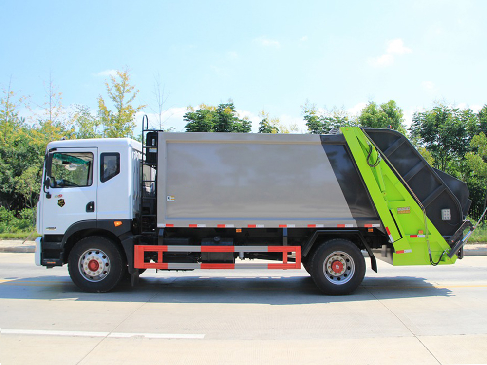 | 整车说明: | 1、该车选用3950和4500两种轴距底盘。2、随底盘选装驾驶室。3、该车有五种可选翻转样式,A:三角斗装置,B:挂桶装置,C:摆臂装置,D:大落地斗装置,E:无后翻转装置。当选择ABCD时,该车整车长(mm)/轴距(mm)/后悬(mm)/整备质量(Kg)的对应关系为:7690/3950/2510/8900,8240/4500/2510/9700;当选择E时,该车整车长(mm)/轴距(mm)/后悬(mm)的对应关系为:7450/3950/2270,8000/4500/2270。4、防护材料:Q235B碳钢,左右侧面防护连接方式为螺栓连接;后部防护由专用装置代替,离地高度480mm。5、ABS系统生产厂家,型号 :焦作博瑞克控制技术有限公司,J ABS.安装具有卫星定位功能的行驶记录仪。6、仅采用发动机与油耗值对应关系为(L/100km):YC4EG170-50/26.0,YC4EG185-50/26.3,ISB180 50/27.8,ISD160 50/26.3。7、专用装置:箱体。主要用于城镇环卫垃圾的收集与运输。8、该车可选装三缸大落地斗装置和摆臂装置外观,以及两缸摆臂装置、三角斗装置和大落地斗装置外观。随底盘选装驾驶室。 | ||