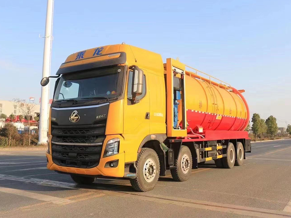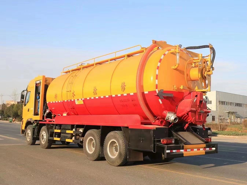 | 整车说明: | 1、该车主要用于下水道清洗及吸污,主要专用装置为真空泵和罐体。罐体外形尺寸为(直段长×直径)(mm):7100×2350,其中罐体前段为清水罐(直段长3100mm);后段为污水罐(直段长4000mm)。两罐独立,且不能同时满载。清洗功能时用清水罐,吸污功能时用污水罐。清水罐总容量11.8立方米,有效容积11.24立方米,介质:水,密度:1000千克/立方米;污水罐总容量14.75立方米,有效容积14.05立方米,介质:液态污物,密度:800千克/立方米。罐体具有举升功能;2、仅采用轴距(mm): 2050+4400+1350。外形长/后悬对应关系为(mm):12000/2675,12300/2975。侧/后防护材料均为Q235,焊接连接,后防护截面尺寸300mm×50mm,下边缘离地高480mm。3、随底盘选装驾驶室。ABS型号/企业:ABS-E 4S/4M/威伯科汽车控制系统(中国)有限公司.4、选装罐体前部安装水箱,选装顶部液压开启,选装罐体顶部护栏样式,选装侧面管道,选装后罐口液压开启样式,选装后部阀门,选装后部清洗管卷盘样式,选装罐体后部不带卷盘结构,后部箭头灯为选装件.选装底盘附件储气筒尿素罐安装位置。选装顶部罐口样式,选装罐体前部安装油缸。 | ||