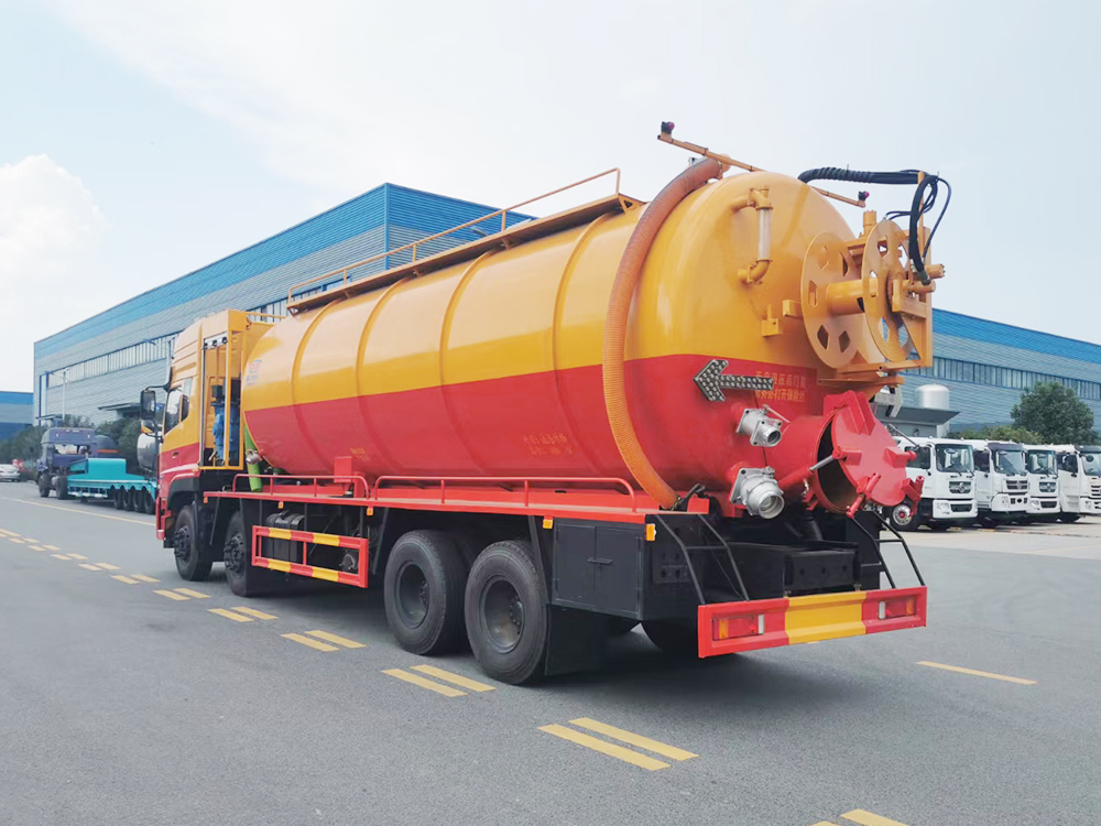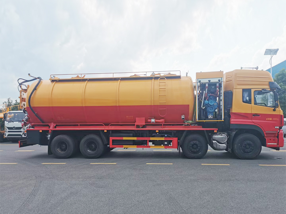 | 整车说明: | 1、该车主要用于下水道的清洗及吸污,主要专用装置为真空泵和罐体;2、侧/后防护材料均为Q235,焊接连接,后防护截面尺寸300mm×50mm,下边缘离地高460mm;3、清水罐总容量11.8立方米,有效容积11.24立方米,介质:水,密度:1000千克/立方米;污水罐总容量14.75立方米,有效容积14.05立方米,介质:液态污物,密度:800千克/立方米。罐体外形尺寸为(直段长×直径)(mm):7100×2350,其中罐体前段为清水罐(直段长3100mm);后段为污水罐(直段长4000mm)。两罐独立,且不能同时满载。清洗功能时用清水罐,吸污功能时用污水罐;罐体具有举升功能;4、ABS型号:3631010-C2000;ABS生产企业:东科克诺尔商用车制动系统(十堰)有限公司;选装描述:随底盘选装驾驶室。5、选装罐体前部安装水箱,选装顶部液压开启,选装罐体顶部护栏样式,选装侧面管道,选装后罐口液压开启样式,选装后部阀门,选装后部清洗管卷盘样式,后部箭头灯为选装件;选装罐体侧面及后部外观,选装罐体前部安装油缸,选装顶部罐口样式。 | ||